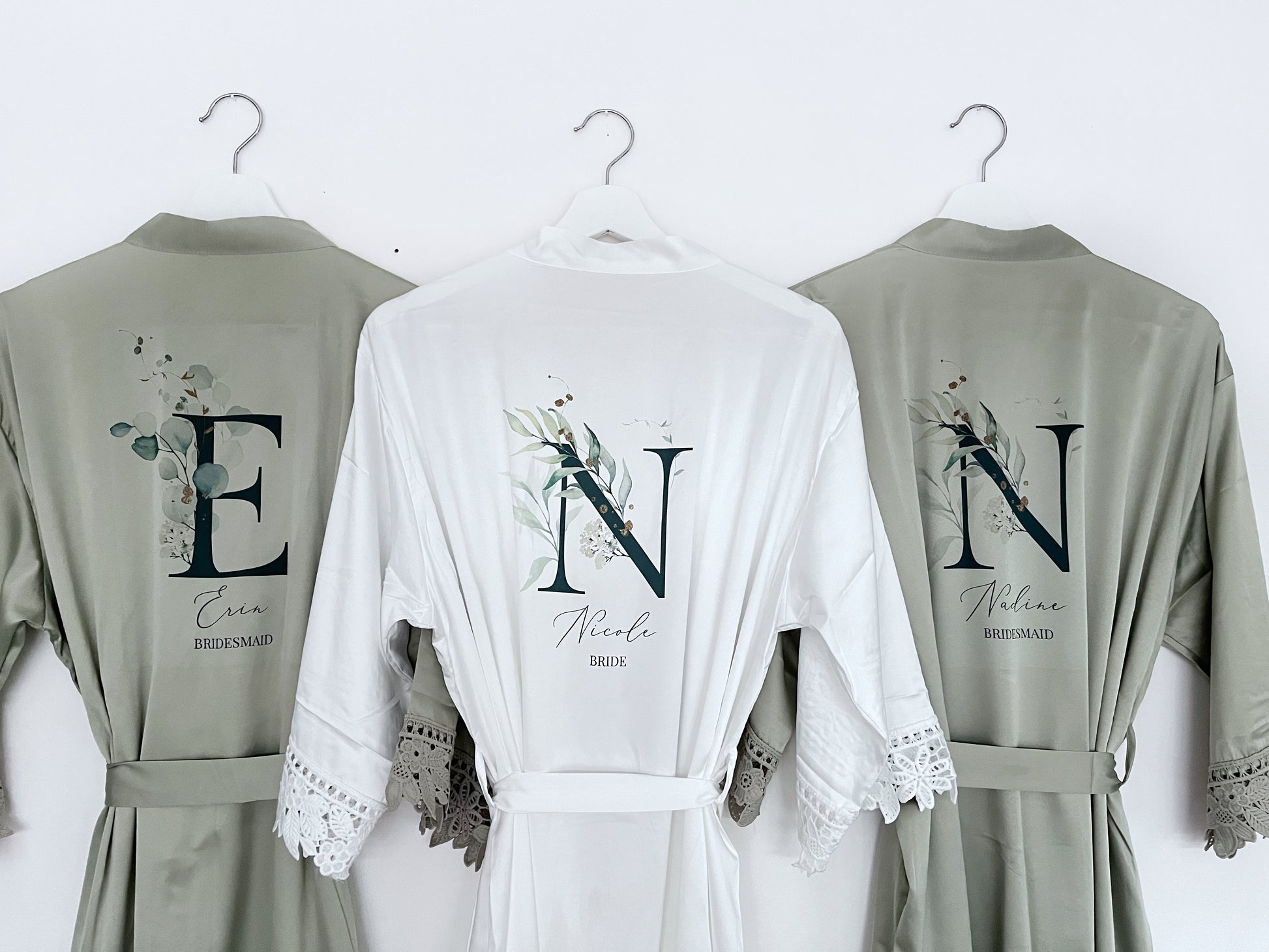 Eucalyptus Floral Initial Personalised Bridesmaid Robe