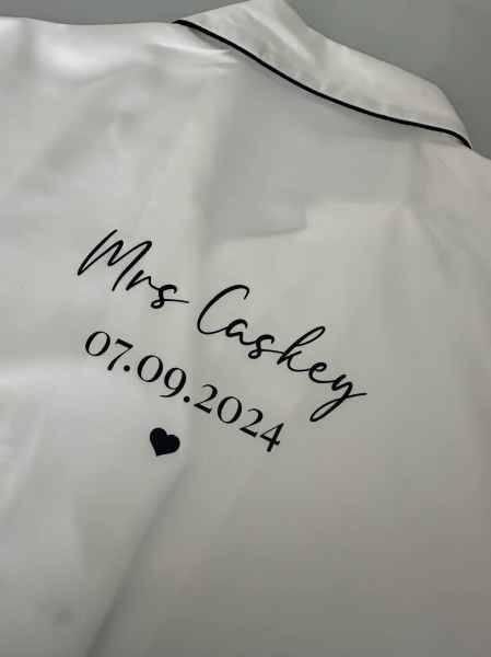 Personalised with Bride and your wedding date on the back of the top and Bride on the front pocket. All wording is printed black.